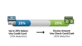 - 1단계 (최저 사용액 채우기): 연봉의 25%인 1,250만 원까지는 포인트 적립이나 할인이 많은 신용카드를 주력으로 사용합니다.