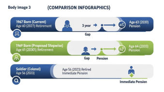 | 예상 정년 | 60세 (재고용시 63세) | 61세~65세 단계적 연장 | 56세 (계급정년 우선) |